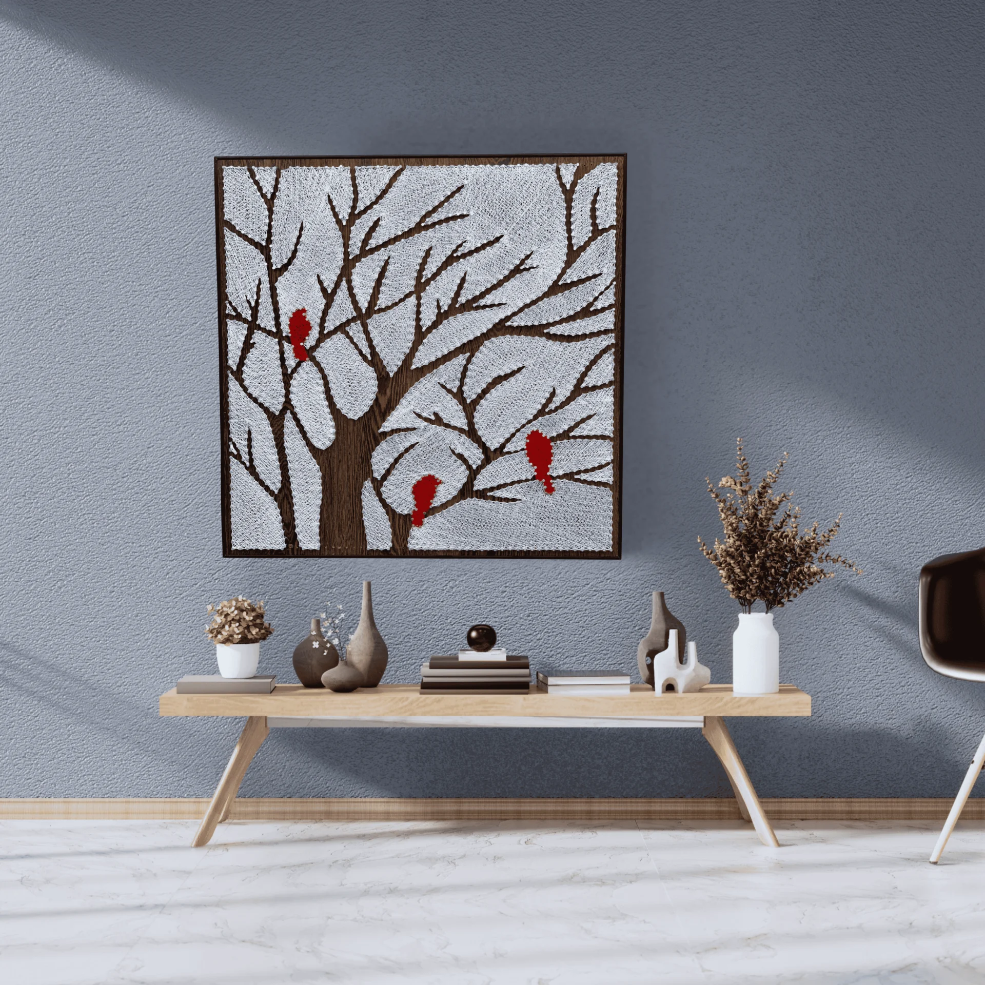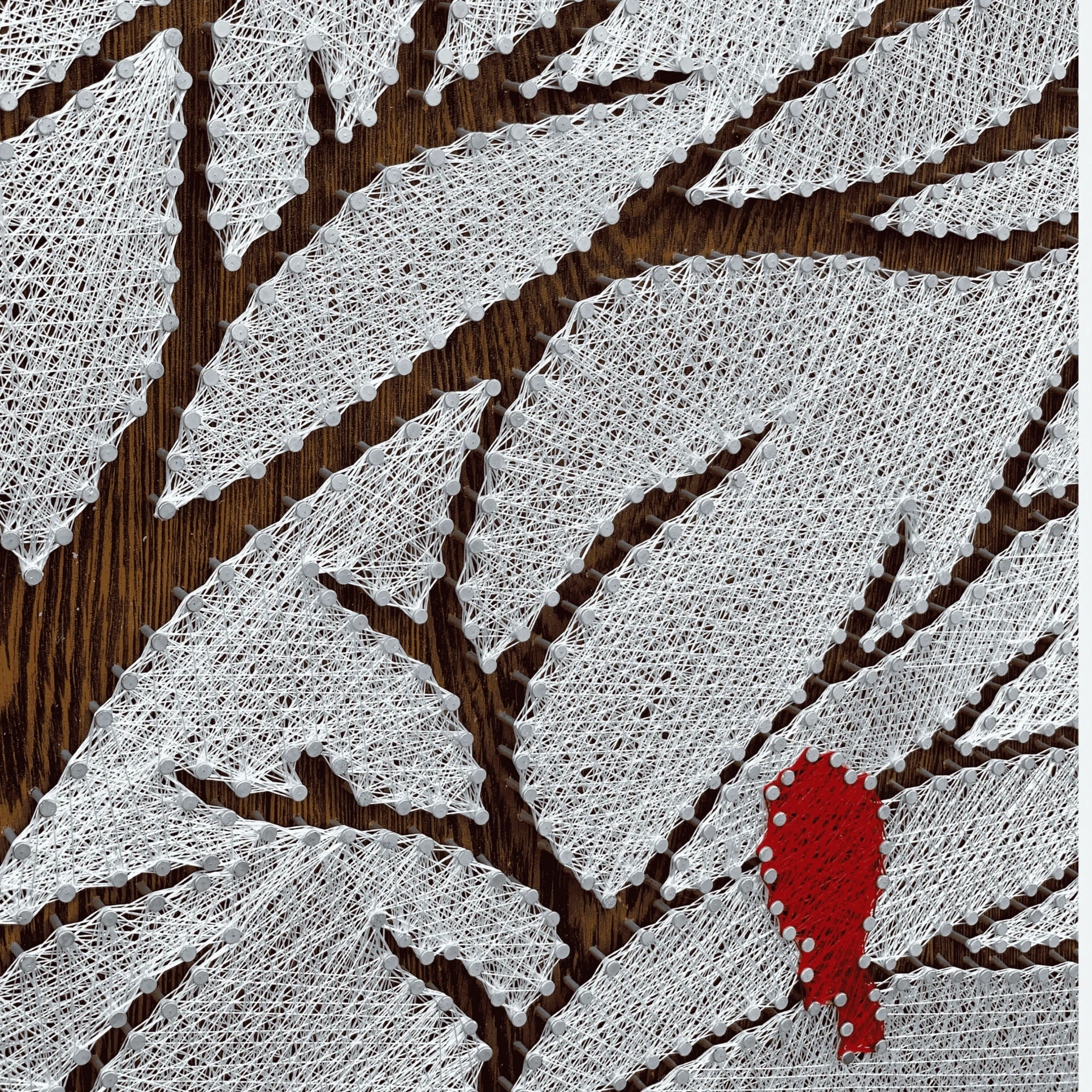 Detailed tree branches crafted with nail and thread technique