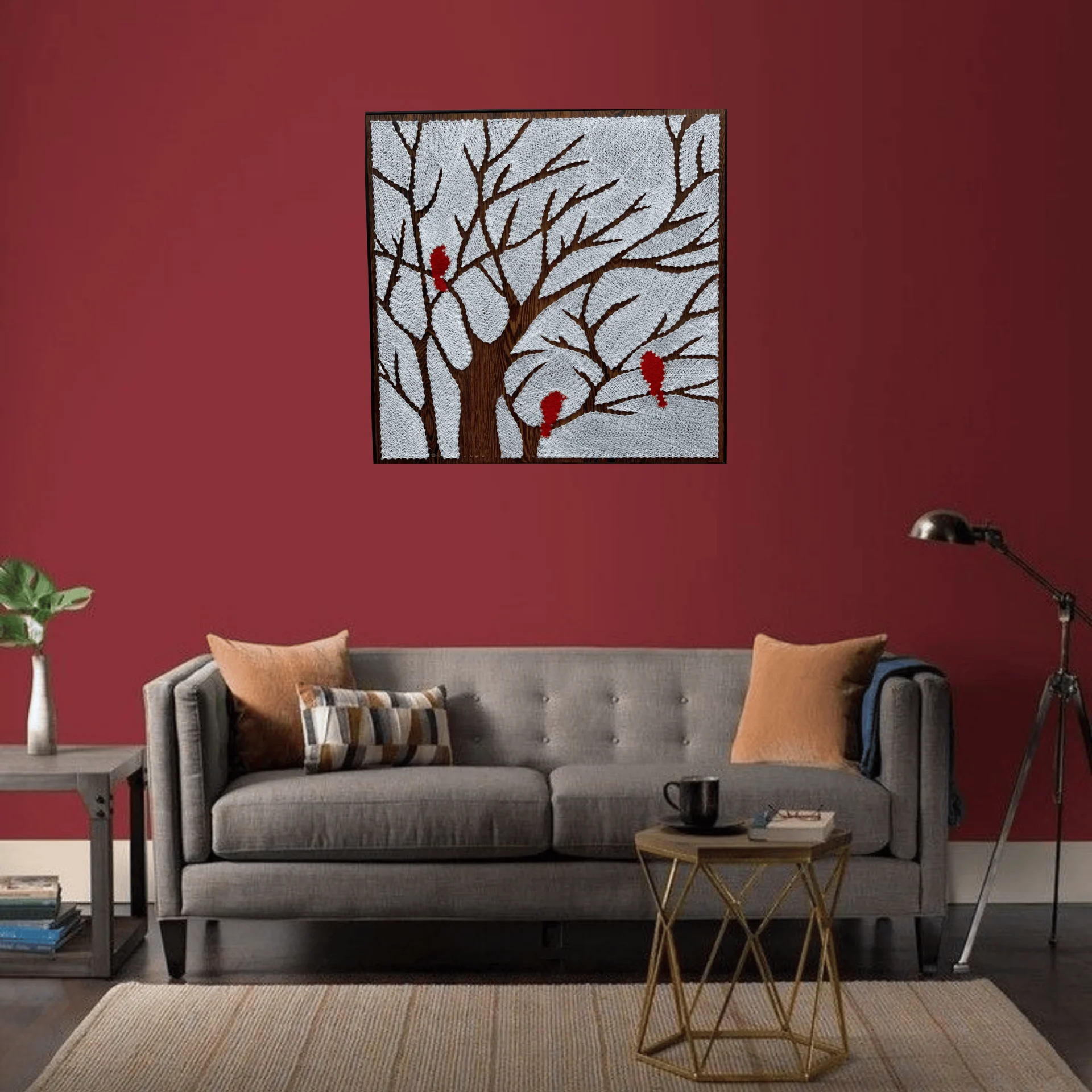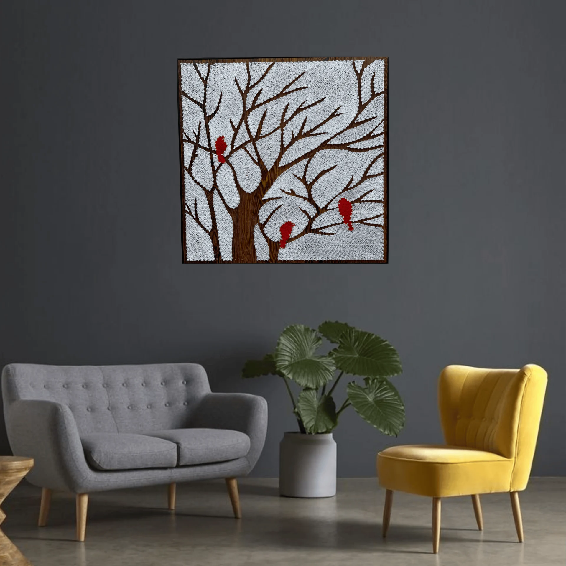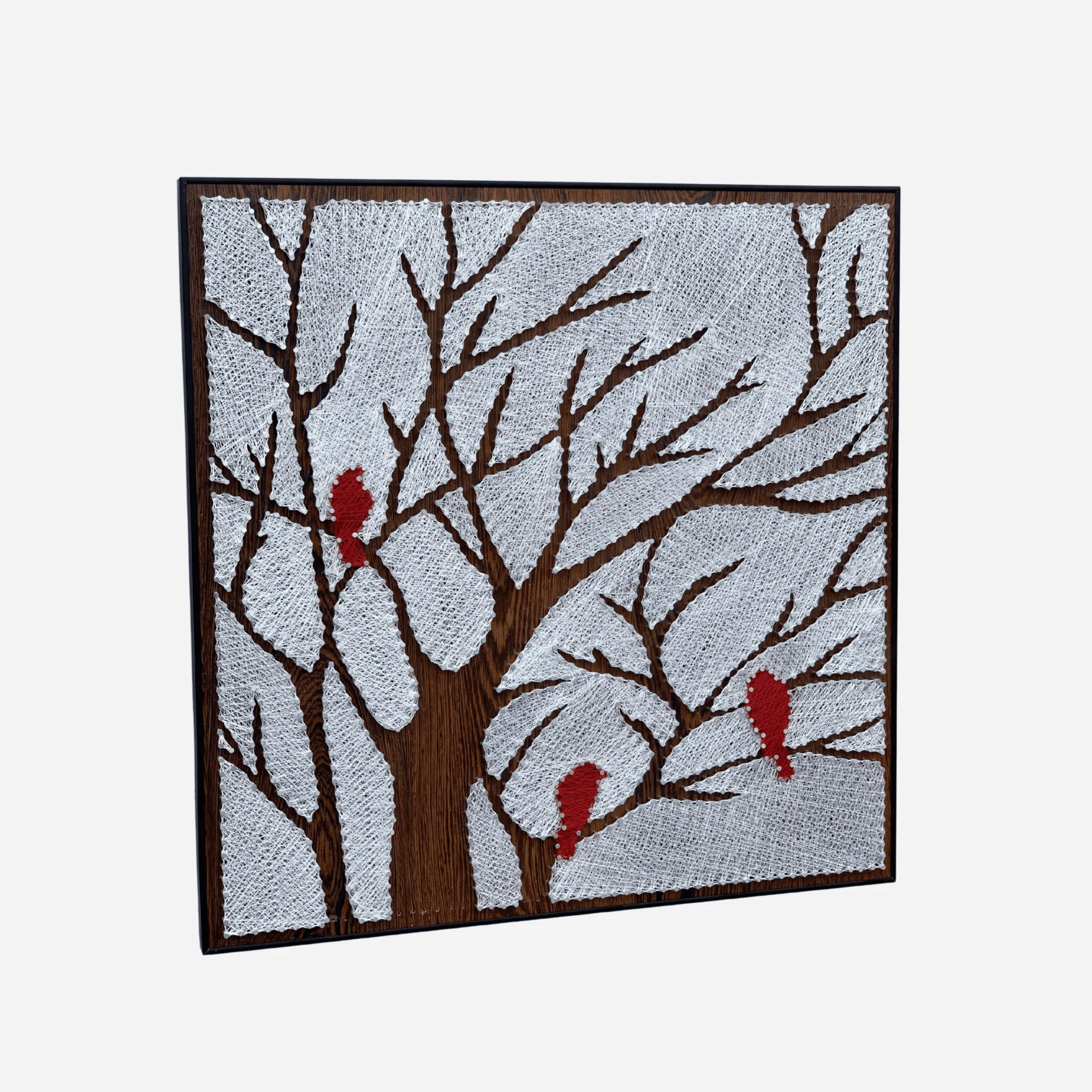 Bring the serene beauty of a snowy forest into your home with this stunning Winter Tree String Art, featuring three vibrant red cardinals perched on delicate branches. Handcrafted with precision using hundreds of nails and intricately woven thread, this artwork captures the peaceful essence of winter and nature.